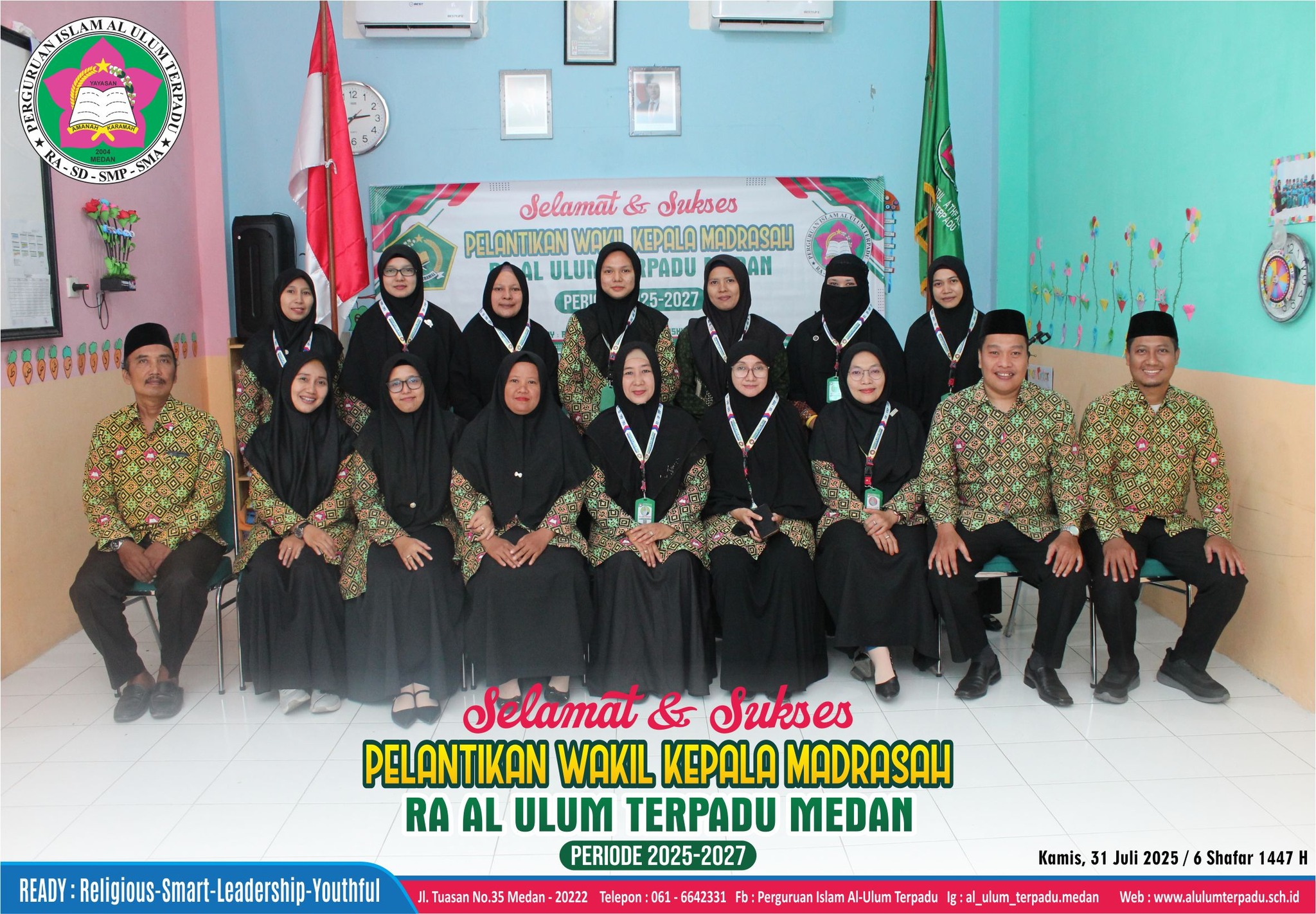 Untuk memudahkan segala urusan administrative pengurusan Izin operasional RA Al-Ulum Terpadu Medan, maka Yayasan Amanah Karamah menetapkan Kepala RA Definif yaitu ibu Dra. Aida Fithriyani. Pelaksanaan Pelantikan Kepala RA digelar pada Senin 29 Mei 2023 di Perguruan Islam Al Ulum Terpadu.
