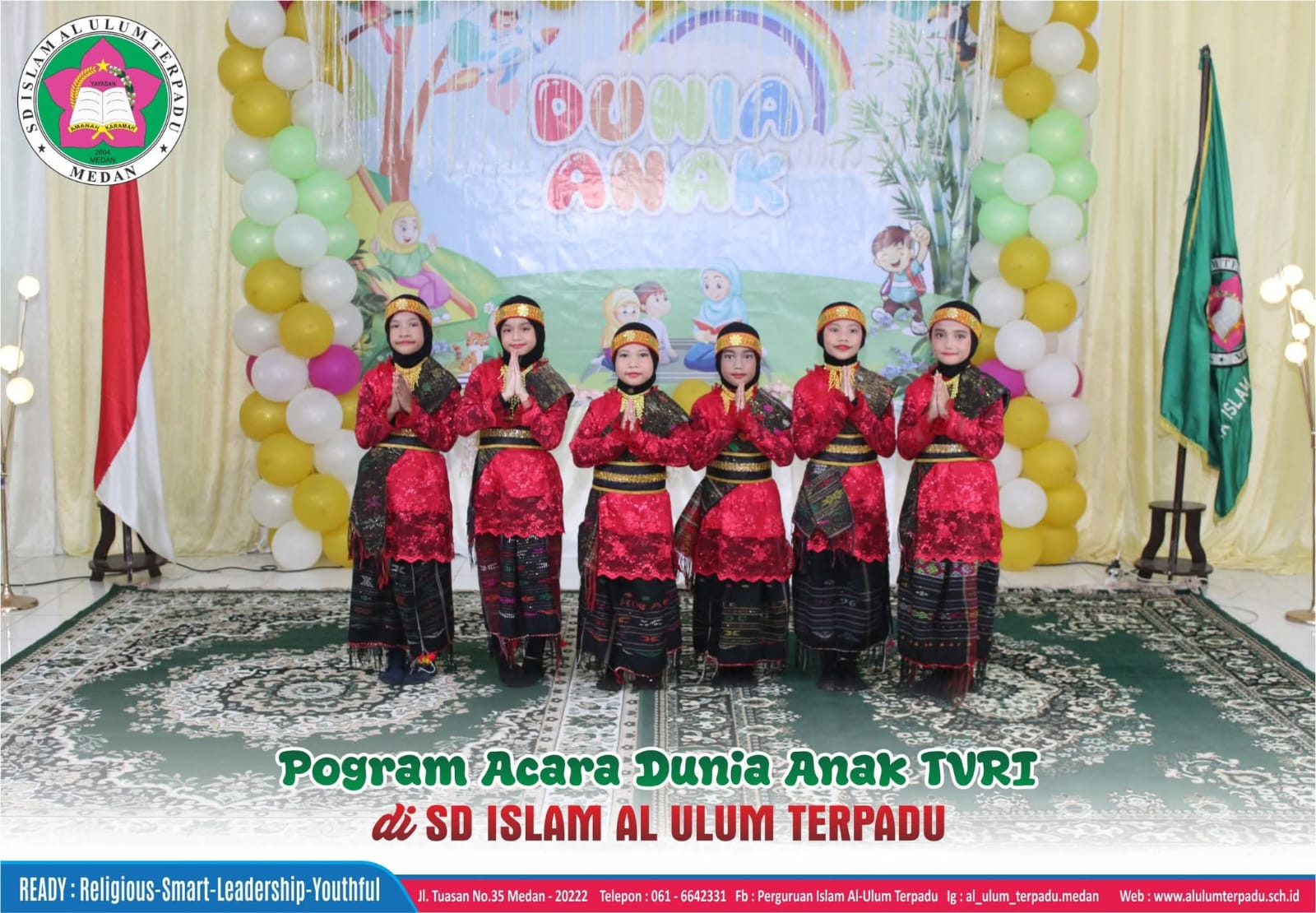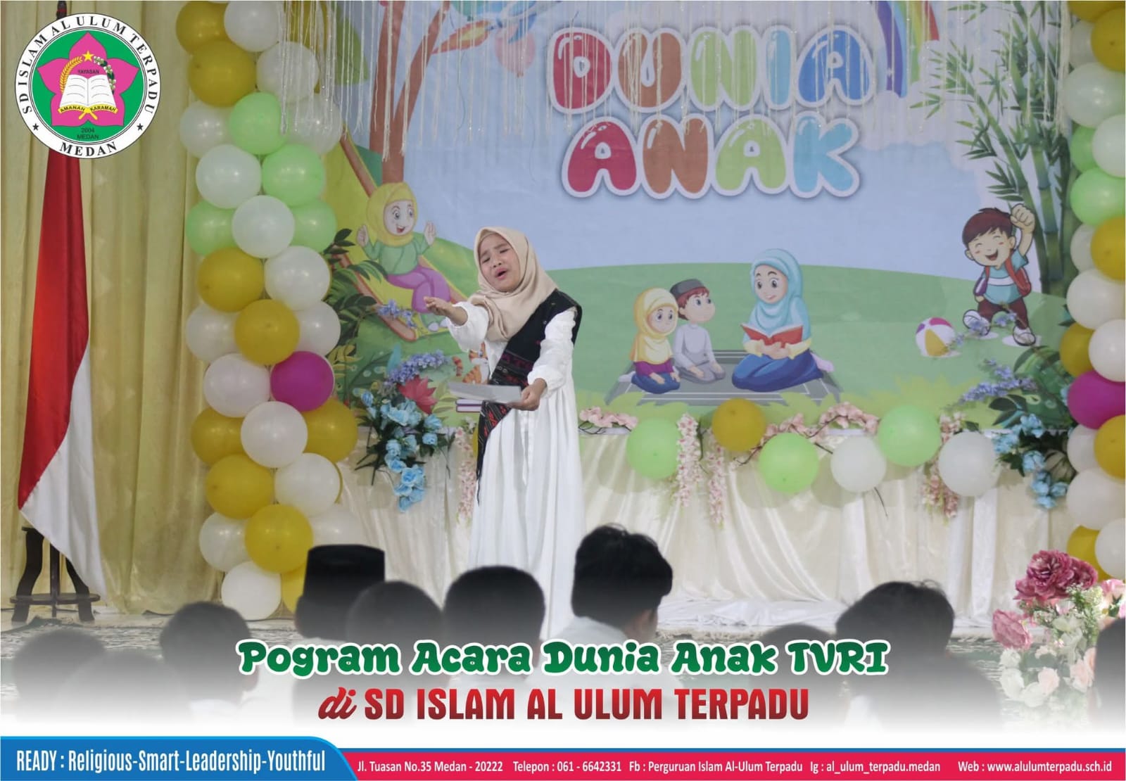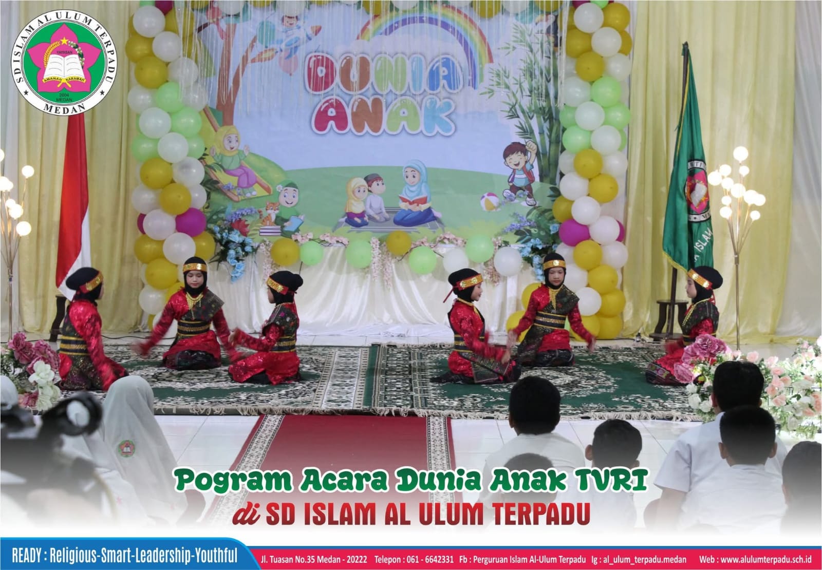 Dengan rasa bangga dan syukur, kami sampaikan bahwa SD Islam Al-Ulum Terpadu Medan telah terpilih untuk berpartisipasi dalam Program Acara Dunia Anak yang diselenggarakan oleh TVRI (Televisi Republik Indonesia).