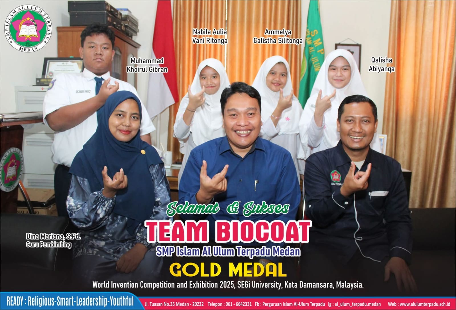 menorehkan prestasi yang luar biasa. Tiga tim yang diutus mengikuti perlombaan penelitian internasional berhasil meraih MEDALI EMAS pada ajang World Invention Competition and Exhibition 2025 di Kota Damansara, Malaysia.