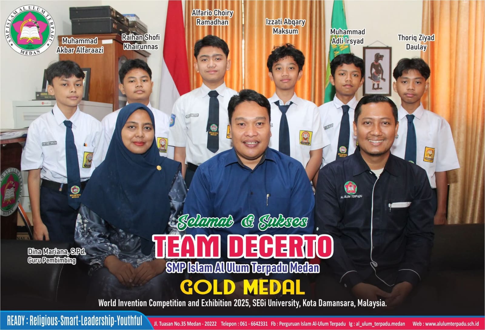 Tim DECERTO diketuai oleh Thoriq Ziyad Daulay dan anggotanya Izzati Abqary Maksum, Alfario Choiry Ramadhan, Raihan Shofi Khairunnas, Muhammad Adli Irsyad, dan Muhammad Akbar Alfaraazi dengan judul inovasi "A Smartwatch for Detecting Student Cheating During Academy Proficiency Examinations (TKA 2025/2026) in Indonesia to Reduce Examinations Freud.