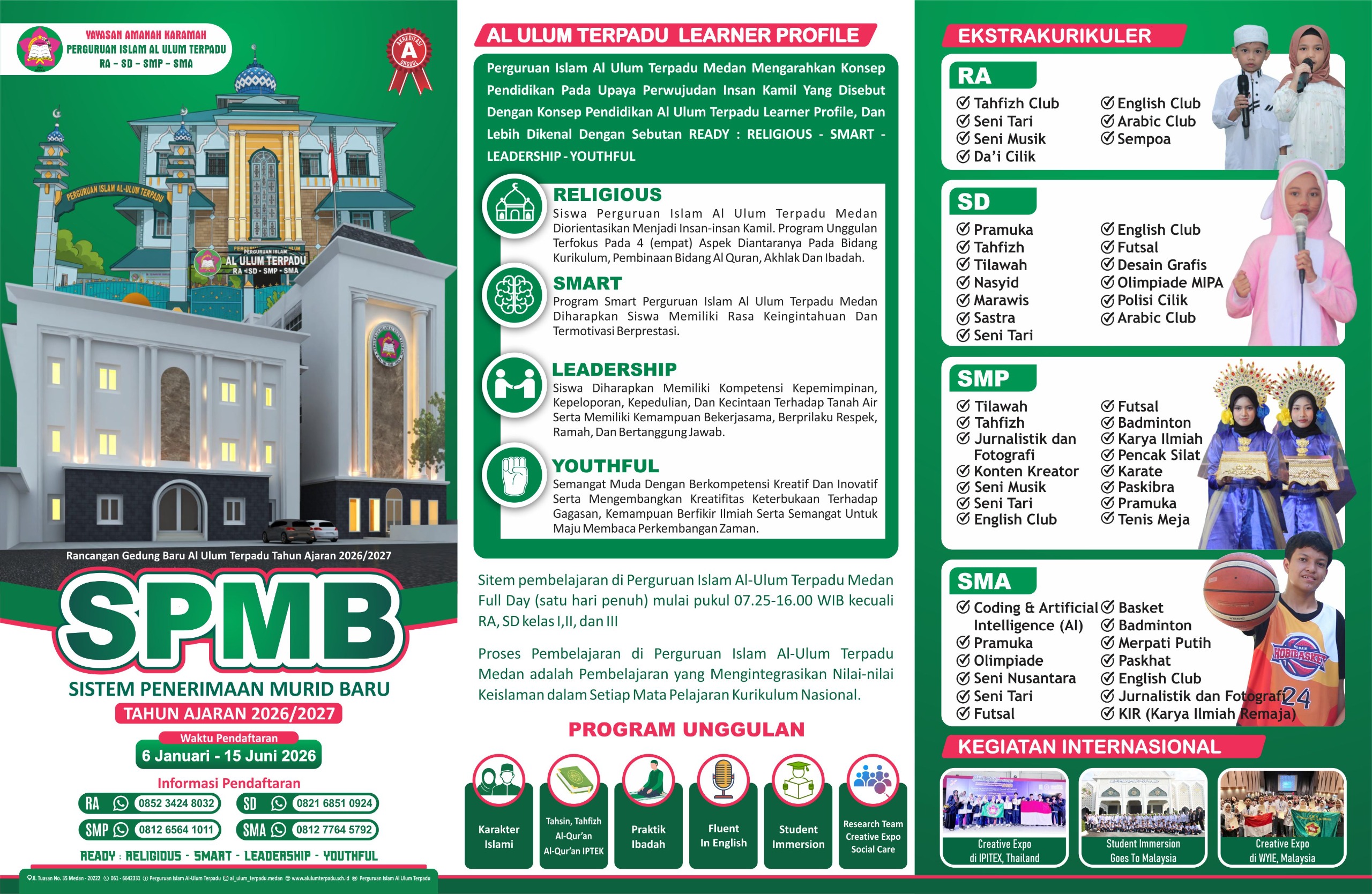 "Menjadi Pusat Pendidikan Dasar Menengah dan Tinggi yang memberikan layanan Prima di Sumatera Utara yang menintegrasikan IMTAQ dan IPTEKS tahun 2030 mengarahkan konsep pendidikan pada upaya perwujudan Insan Kamil dengan konsep pendidikan Al Ulum Terpadu Learner Profile, dan lebih dikenal dengan sebutan Ready (Religius, Smart, Leadership,Youthfully)."