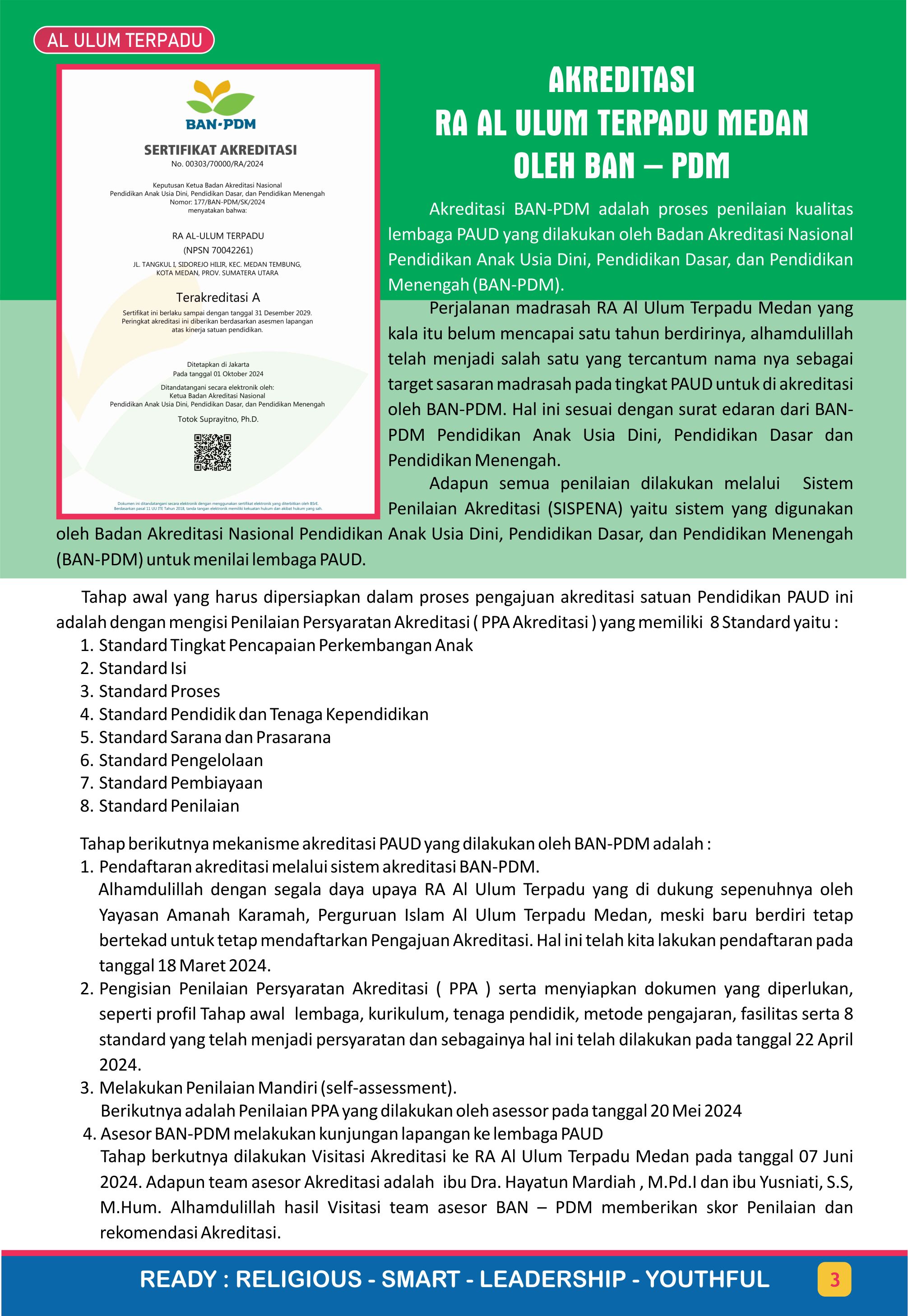 Perguruan Islam Al-Ulum Terpadu Jl. Tuasan No. 35 Medan, didirikan sejak tahun 2004, Perguruan Al-Ulum Jl. Tuasan diasuh oleh Yayasan Amanah Karamah (YAK) sesuai Akte Notaris Syafril Sofyan, S.H. dengan menyatakan diri sebagai perguruan Islam Al Ulum Terpadu (Al Ulum Integrated Islamic School). Yayasan Amanah Karamah memutuskan Perguruan Islam Al Ulum Terpadu menyelenggarakan untuk tingkat SD, SMP, dan SMA. Yayasan Amanah Karamah menyusun konsep pendidikan yang mengintegrasikan pendidikan umum dengan pendidikan agama dalam suatu sistem penyelenggaraan pendidikan nasional yang berbasis agama (Islam). Untuk itu, alokasi waktu yang disediakan harus mengakomodasikan kedua disiplin ilmu tersebut, yaitu ilmu umum dan ilmu agama dalam satuan kurikulum.